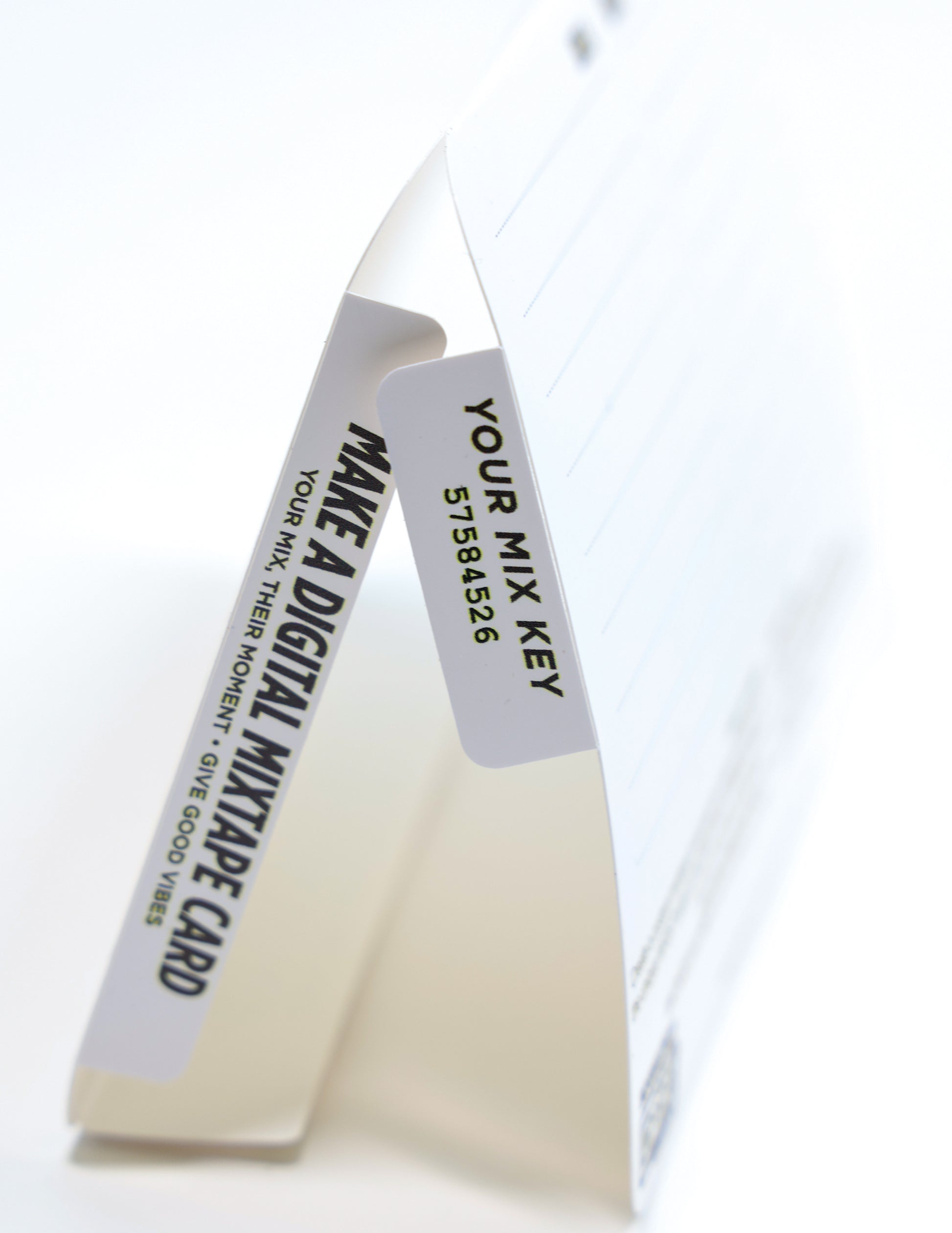 It bridges the physical and the digital — scan the front QR to meet DJ ScratchTracks, your AI music muse who helps you build a custom 8-track playlist on Mixscan.me. Save it, DIY it, and gift it. When your person scans the card, they’ll get a greeting from the DJ and the mix you made just for them — their personal soundtrack for brighter days.