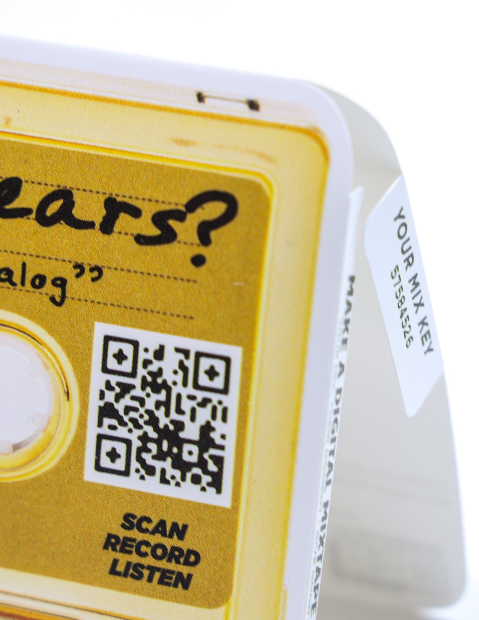 It bridges the physical and the digital — scan the front QR to meet DJ ScratchTracks, your AI music muse who helps you build a custom 8-track playlist on Mixscan.me. Save it, DIY it, and gift it. When your person scans the card, they’ll get a greeting from the DJ and the mix you made just for them — their personal soundtrack for brighter days.
